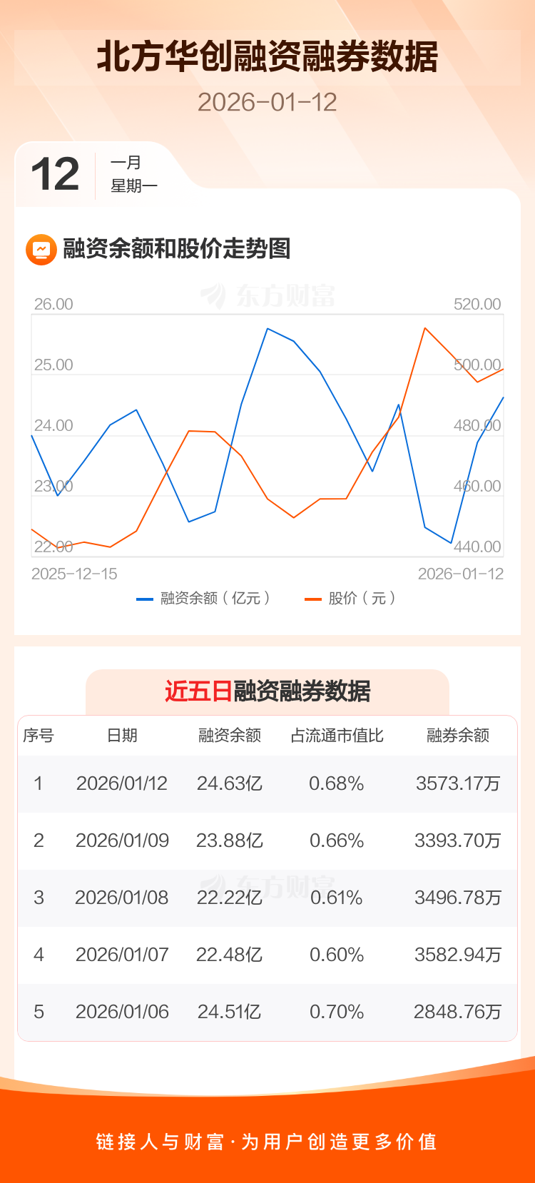 交易所最新数据显示,北方华创于2026年1月12日获融资买入4.12亿元,融资偿还3.36亿元,当日融资净买入7571.66万元。目前,该股融资余额24.63亿,占流通市值比例为0.68%。