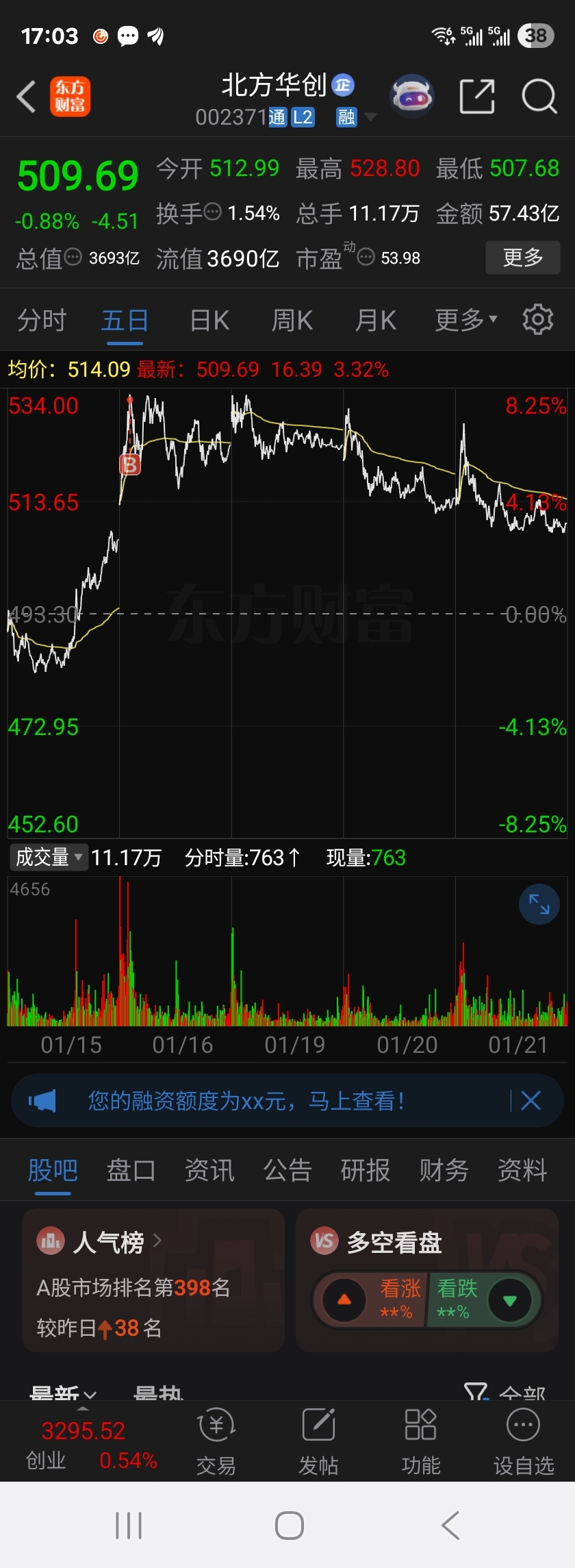 $北方华创(SZ002371)$ 又挂山顶了,明天跌走了