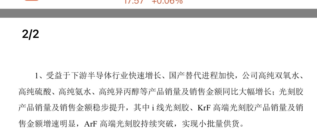 $北方华创(SZ002371)$ 晶瑞电材今天的预告提到的,国产高端光刻胶,突破,热泪盈眶