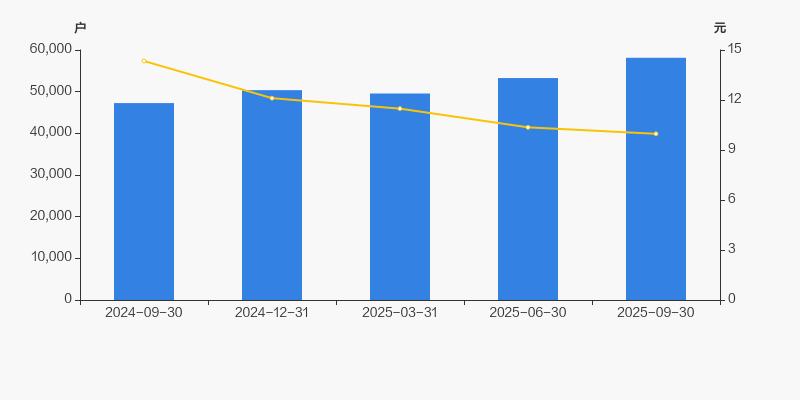 截至2025年9月30日,公司最新总股本为15.92亿股,其中流通股本为14.71亿股。户均持有流通股数量由上期的2.76万股下降至2.53万股,户均流通市值25.23万元。