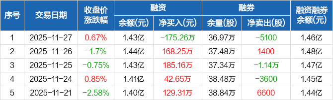 伟星新材:融资净偿还175.26万元,融资余额1.43亿元(11-27)