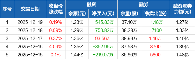 伟星新材:融资净偿还545.83万元,融资余额1.23亿元(12-19)