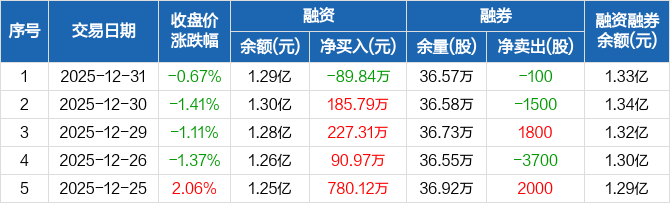 伟星新材:融资净偿还89.84万元,融资余额1.29亿元(12-31)