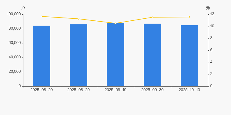 2025年8月20日至今,公司股东户数有所增长,区间涨幅为1.02%。2025年8月20日至2025年10月10日区间股价下降0.86%。