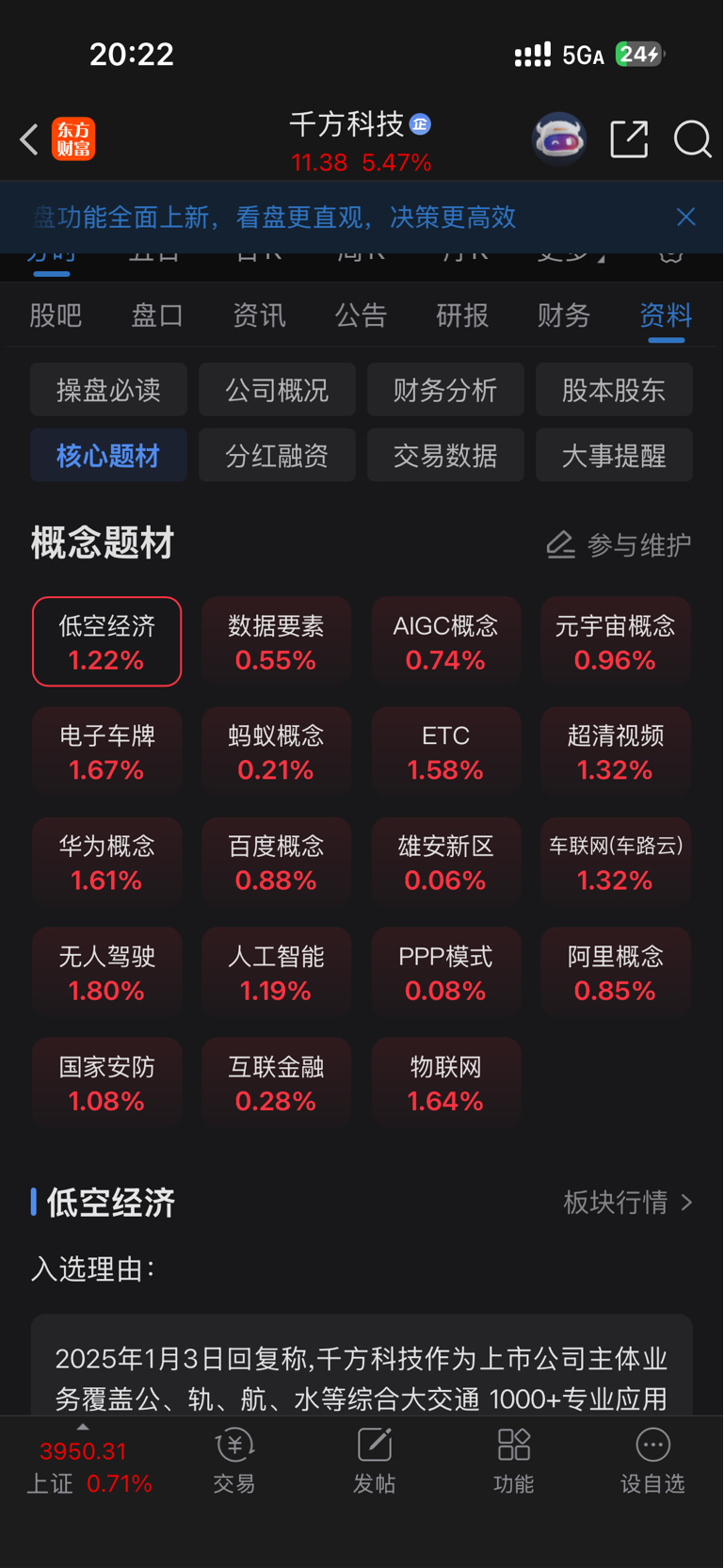 $千方科技(SZ002373)$ 单从题材这块看19个概念,而且绝大多数都是热门概念,一直不温不火为什么没连板涨停过,有懂行的给解释一下吗?