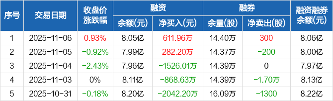 千方科技:融资净买入611.96万元,融资余额8.05亿元(11-06)