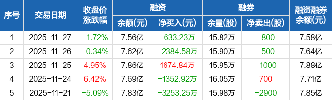 千方科技:融资净偿还633.23万元,融资余额7.56亿元(11-27)