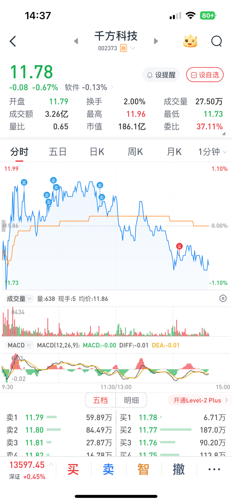 $千方科技(SZ002373)$ 涨跌继续随意,我玩我的