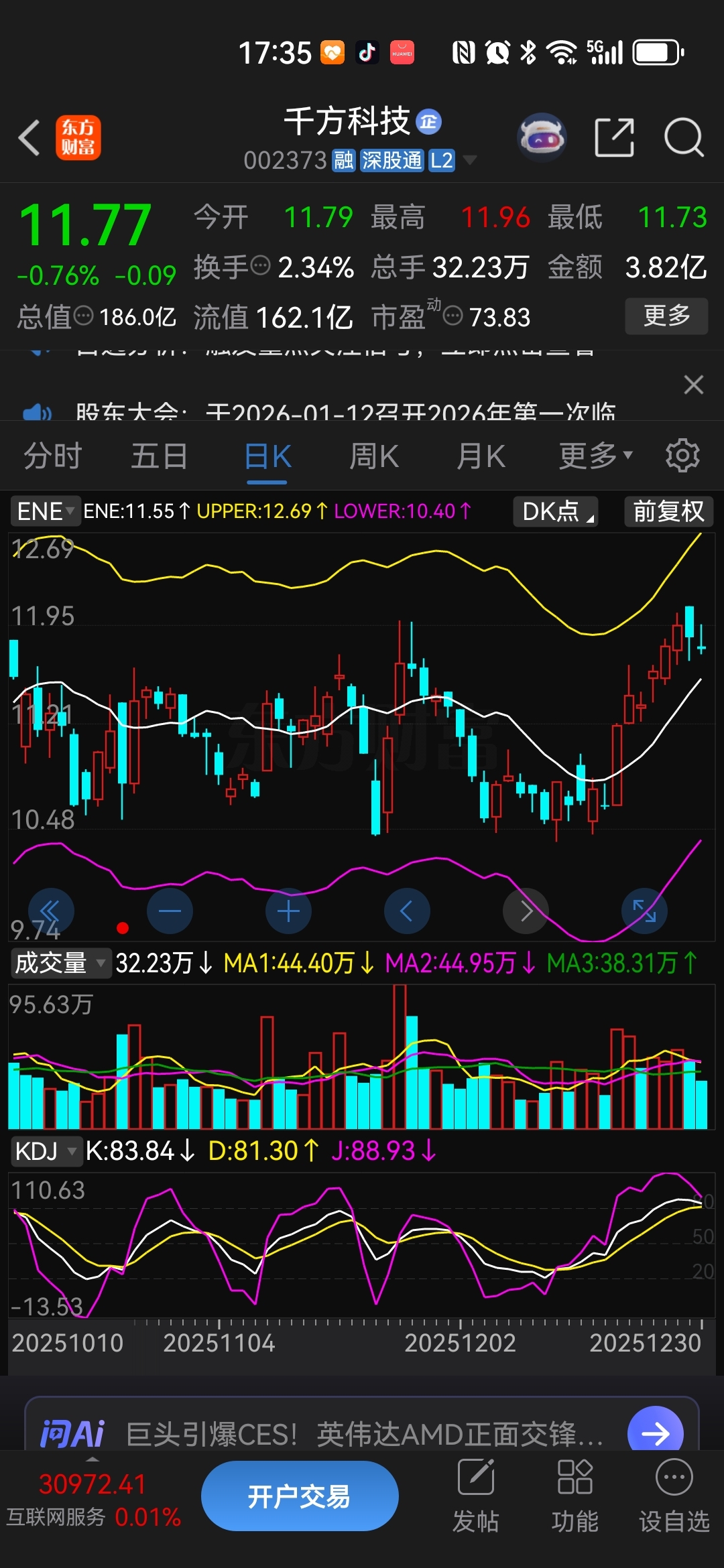 ENE上轨明天到12.81,明天可以涨停不出轨。