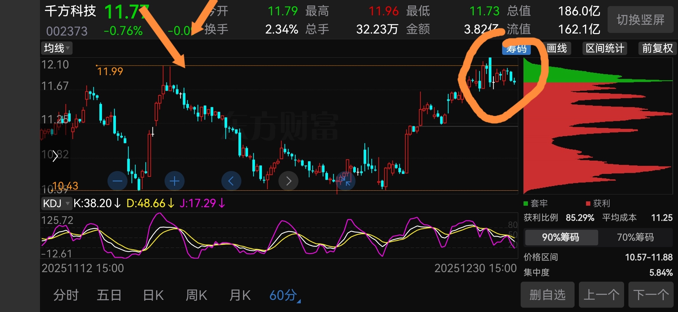 5分钟KD低位钝化,成交量在今天最后十分钟明显放大,60分钟在前高箱顶处积蓄能量