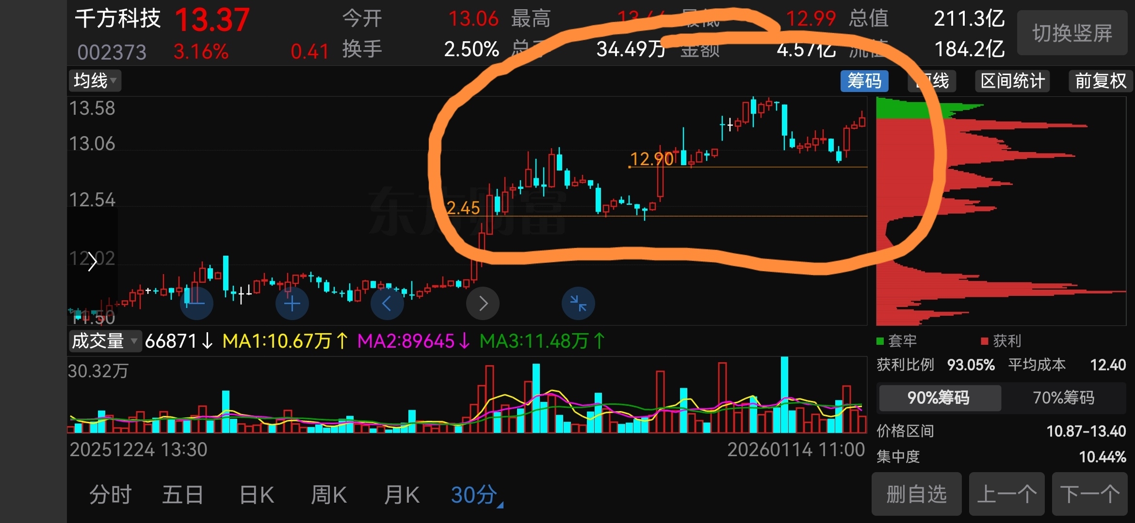 目前还在突破12.5后的多空拉扯区域,什么时候摆脱这个区域便是加速上涨的时候。