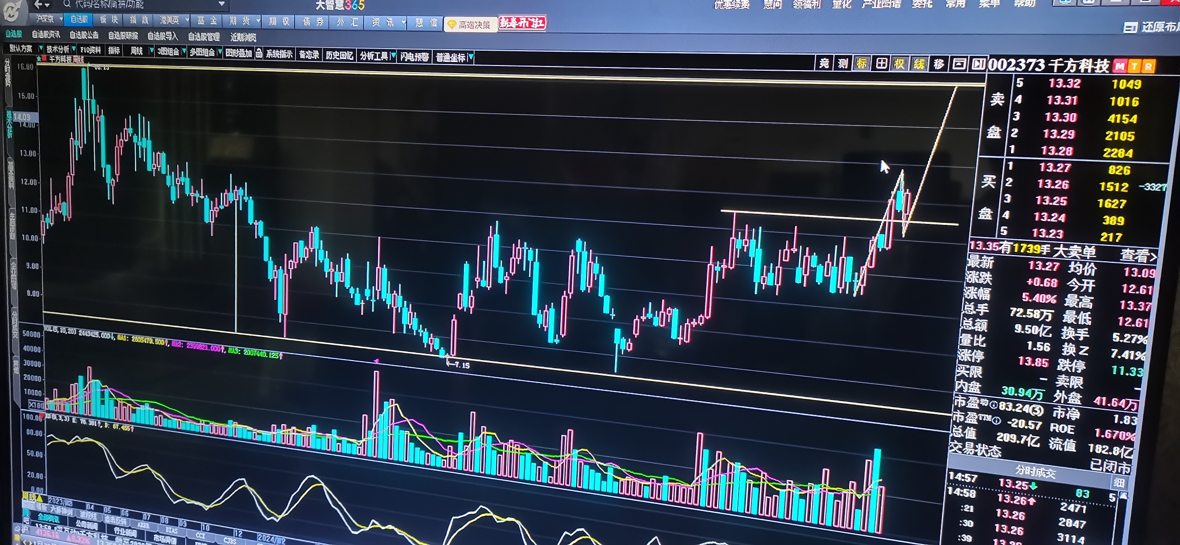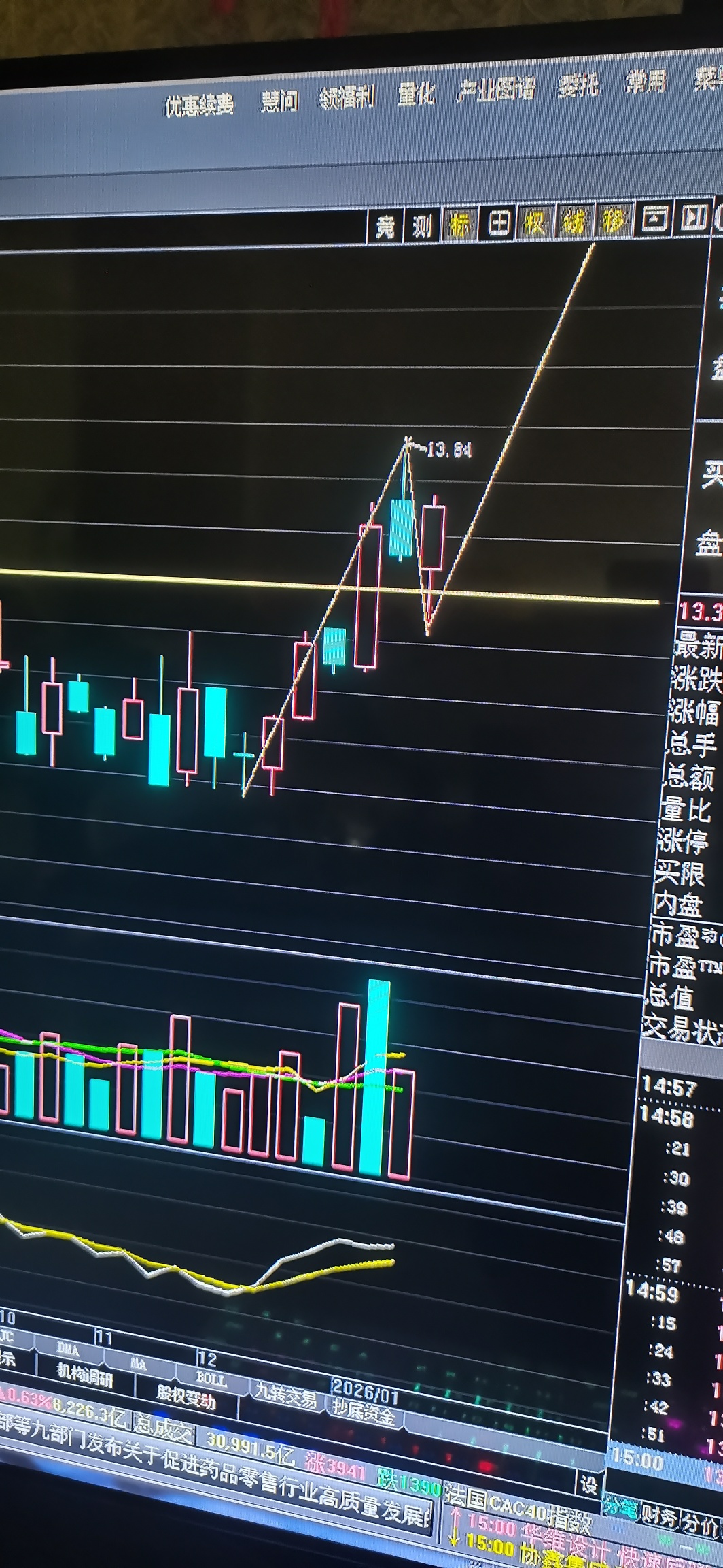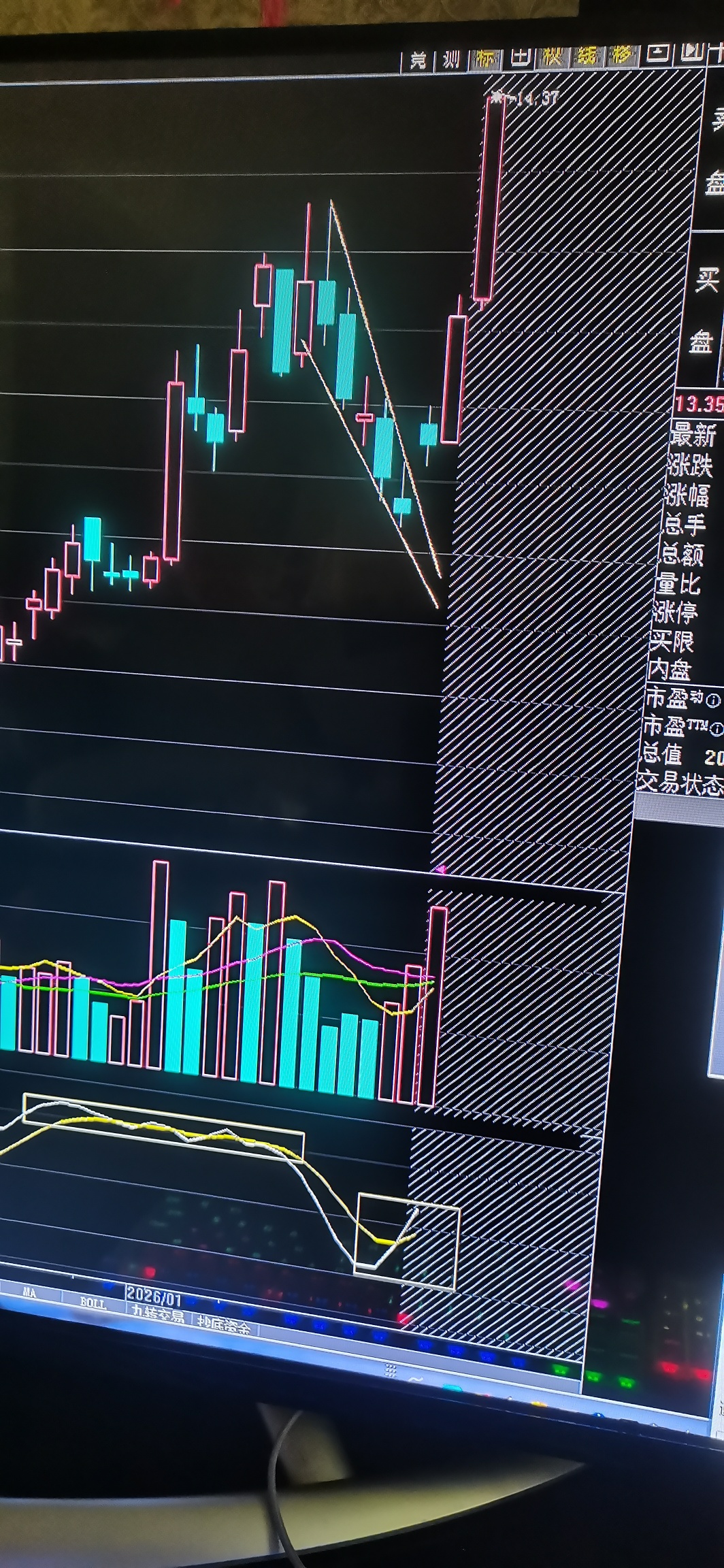目前看是量化在控盘,但不管谁控盘,周一都必须要新高,周线已完成突破回踩再起的技术图形,日线已经出现V型反转的苗头,周一等待确认主升3一3的出现。