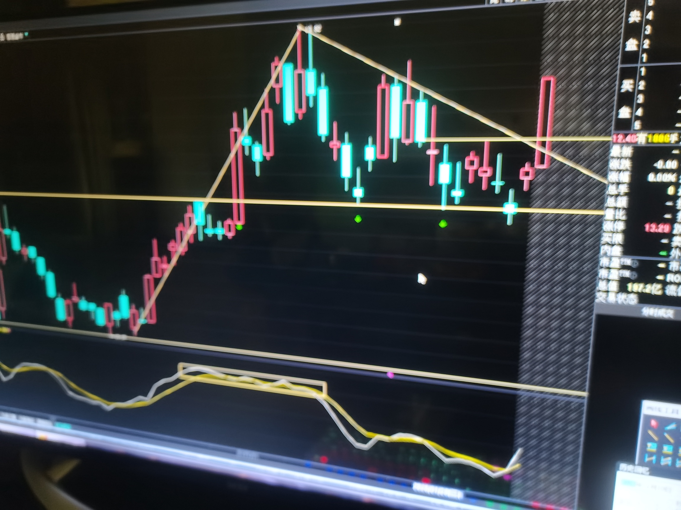 今天向上跳空开盘,说明上周5的C浪回调已结束,明天中长突破12.7的末跌高,并且突破三角形整理形态,新的一波上升便开始,这波并且是主升浪,说1千道1万,最后还要看自己能否能拿到。