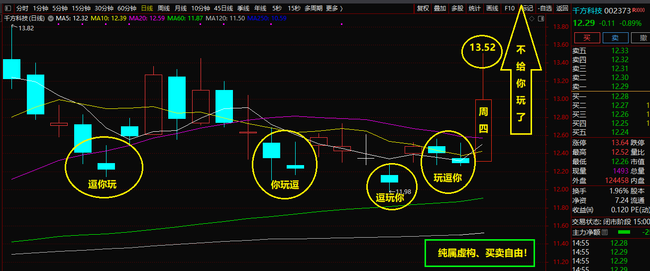 本大师:今日尾盘诱空、周四触摸涨停板13.52