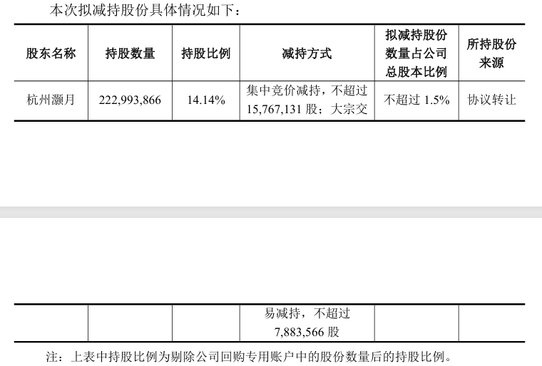 若以公司目前2月13日最新股价11.85元/股估算,杭州灏月最高能减持套现约2.80亿元。