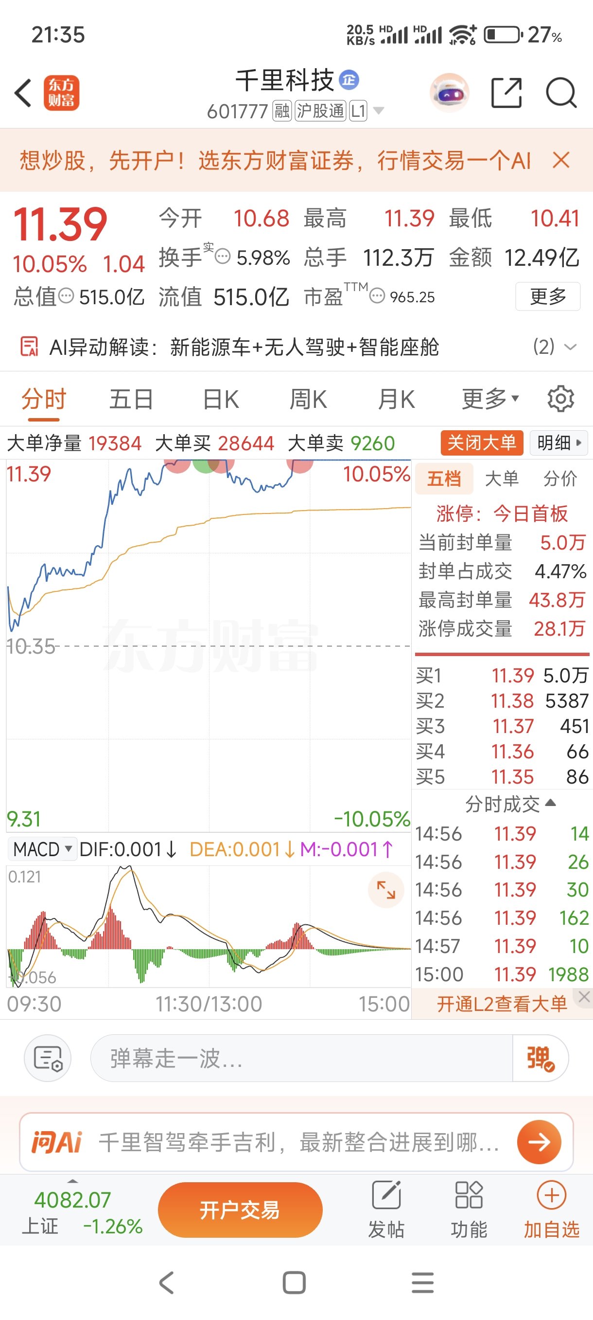 $千方科技(SZ002373)$ 看看人家千里科技,差一个字差那么多……