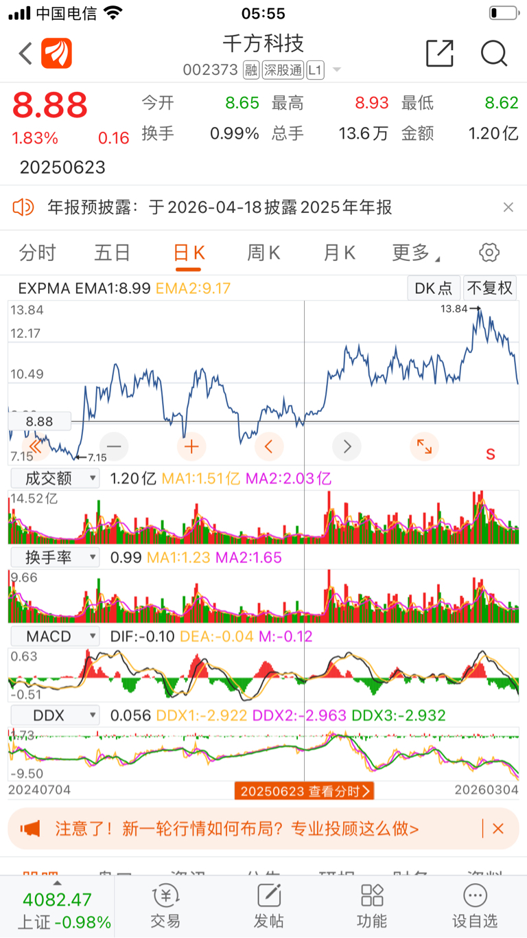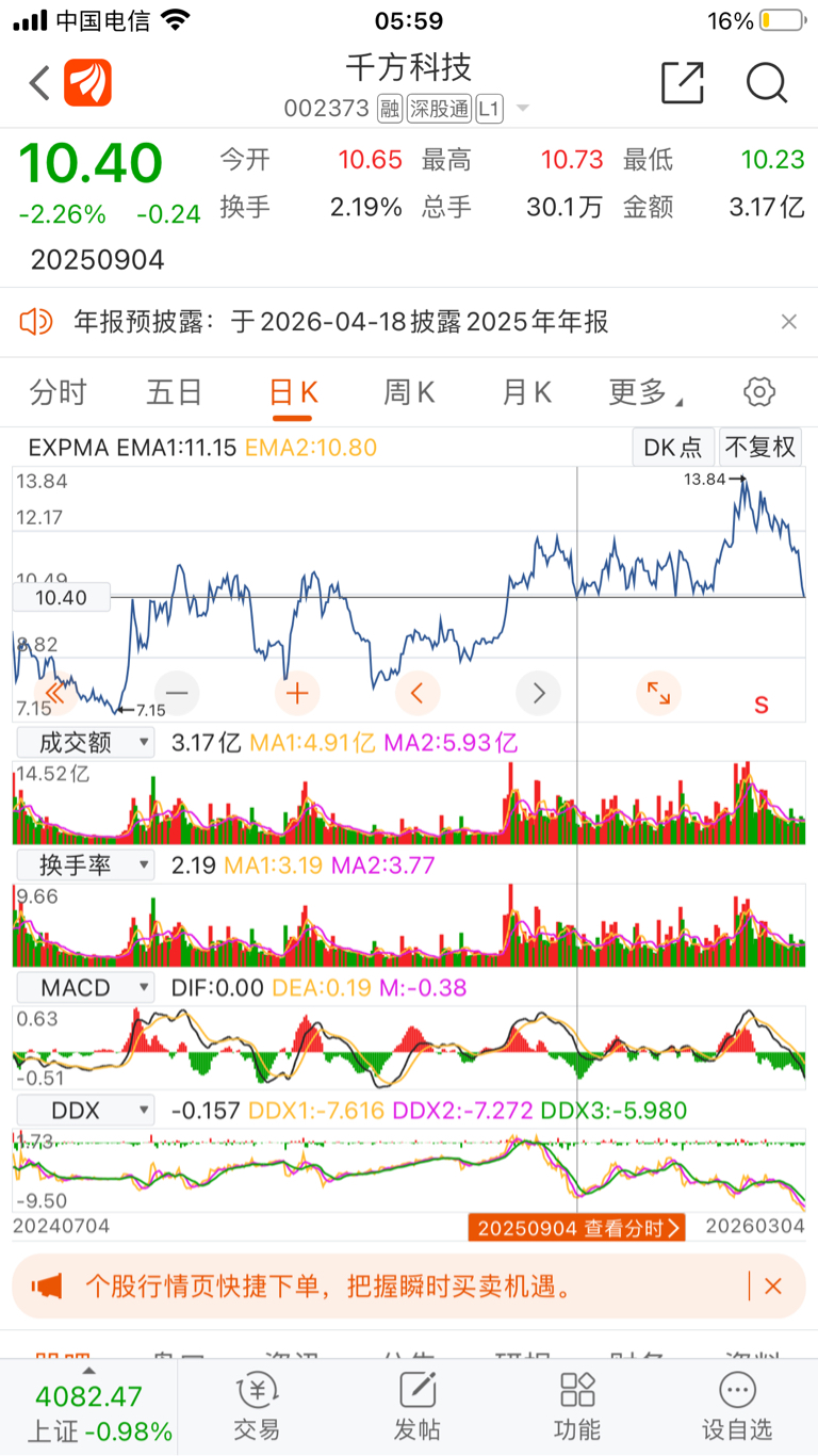 $千方科技(SZ002373)$ 技术派就是下跌趋势中不停往下画支撑线,主力资金就是打破所有的支撑线。直到你切底放弃画线。过去靠技术吃饭,Al时代要靠脑子吃饭了,技术派你已经老了,要跟上时代的脚步一起聊聊量价和趋势的转折点何时出现。来一根中阳突破就立马改三观,再来一个中阴下杀估计所有人都活埋了。主力军就是这样掌控了人心的弱点。