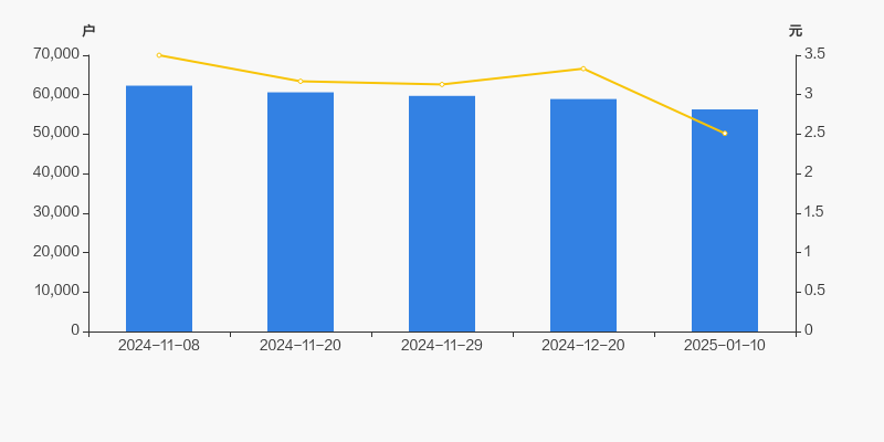 自2024年11月8日以来,公司股东户数连续4期下降,截至目前减幅为9.66%。2024年11月8日至2025年1月10日区间股价下降28.29%。