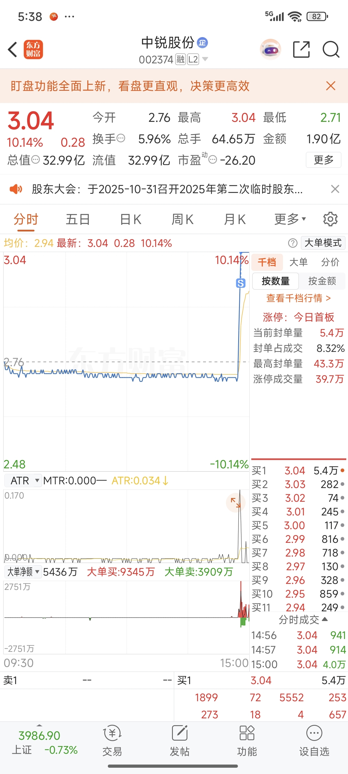 $中锐股份(SZ002374)$ 终于账户红了,赶紧跑半仓