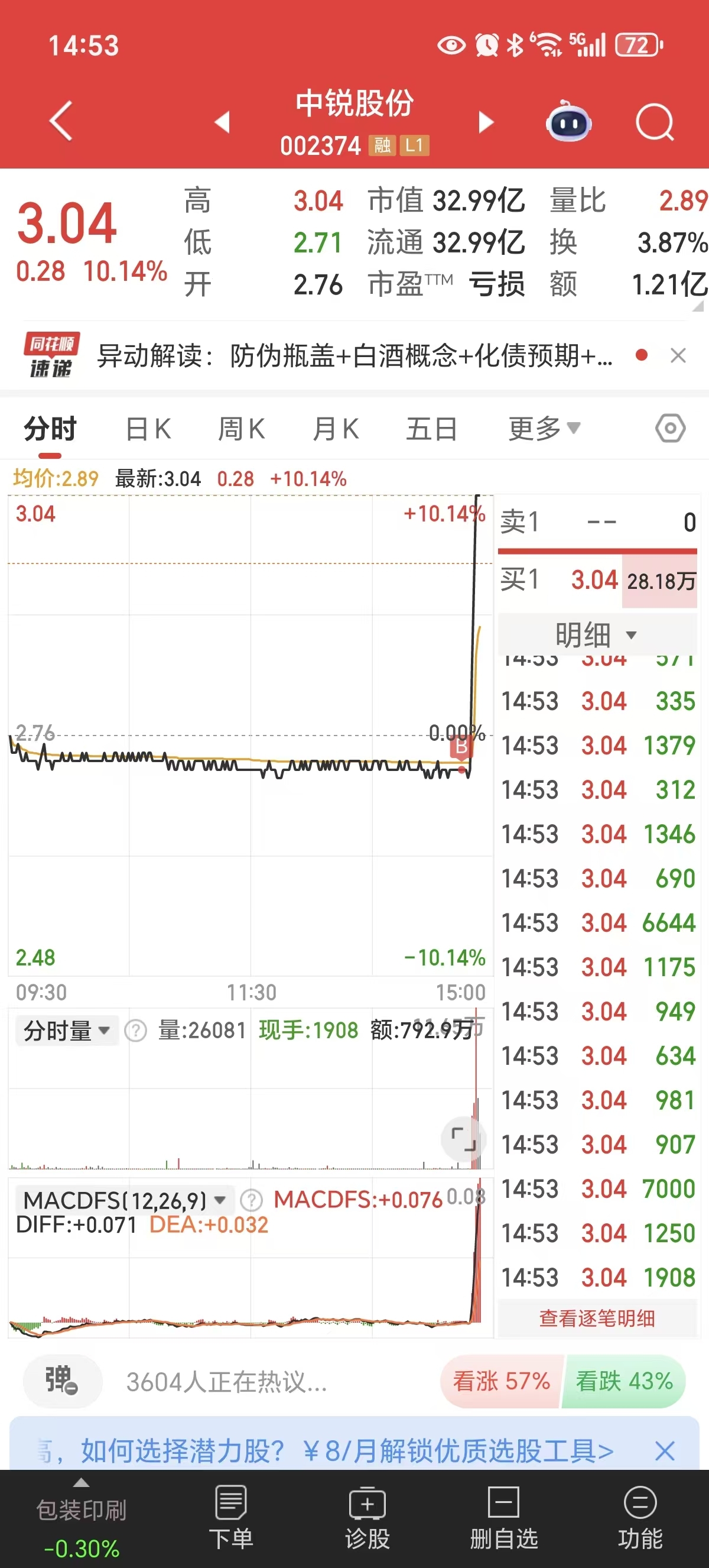 明微电子卖飞一直不跌,收盘前满仓中锐,最近卖什么涨什么