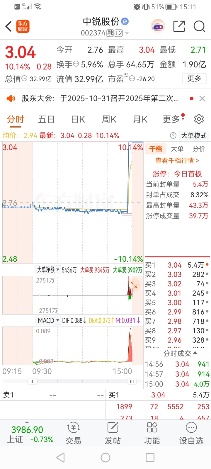 $中锐股份(SZ002374)$ 这中尾盘突袭拉涨停的票,第二天高开能追吗?