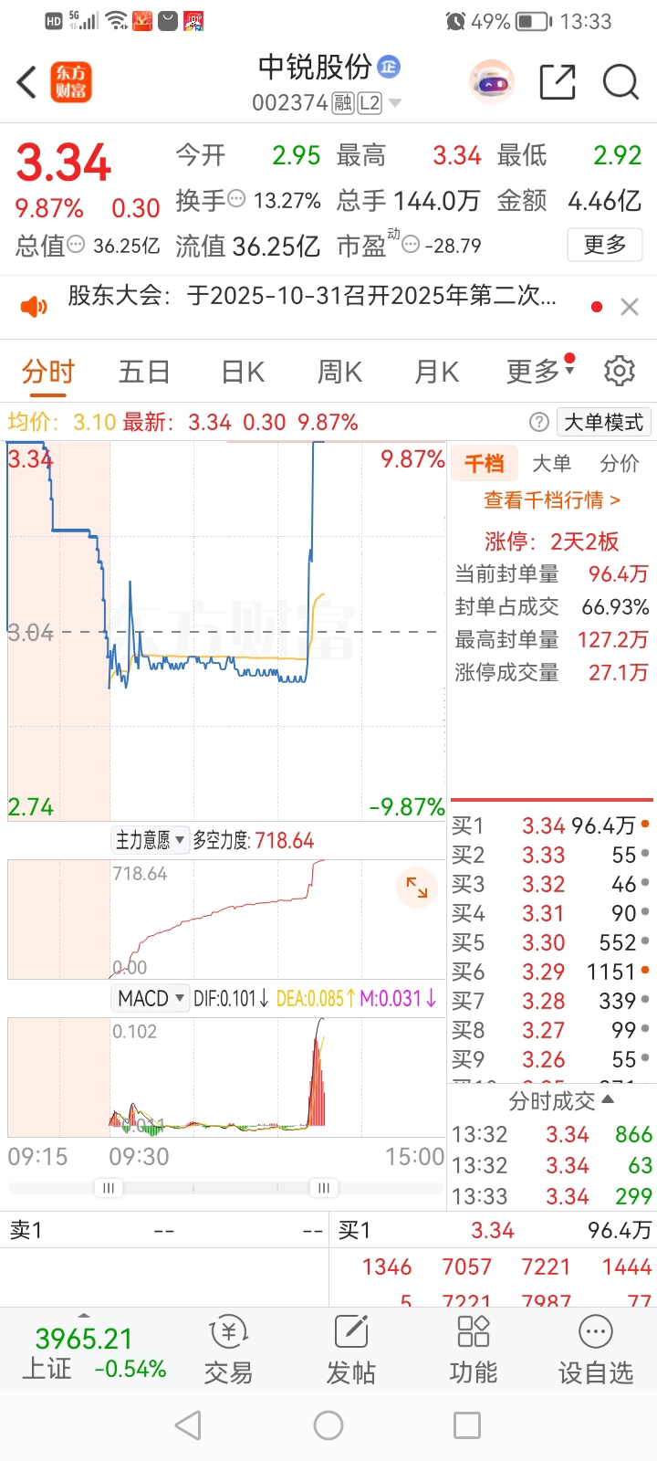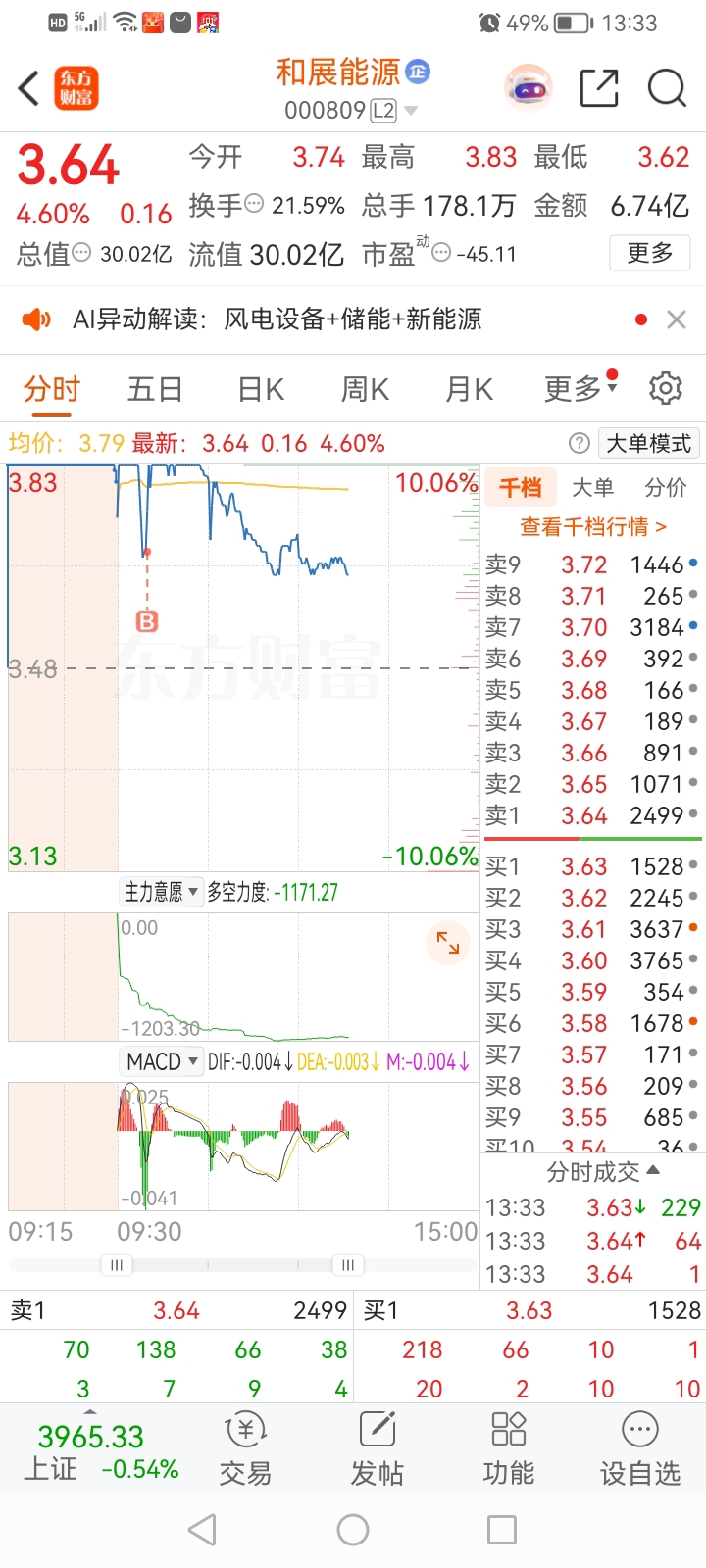 和展能源和中锐股份都是昨日首板,二选一买了和展能源,中锐股份早盘下杀到水下感觉没