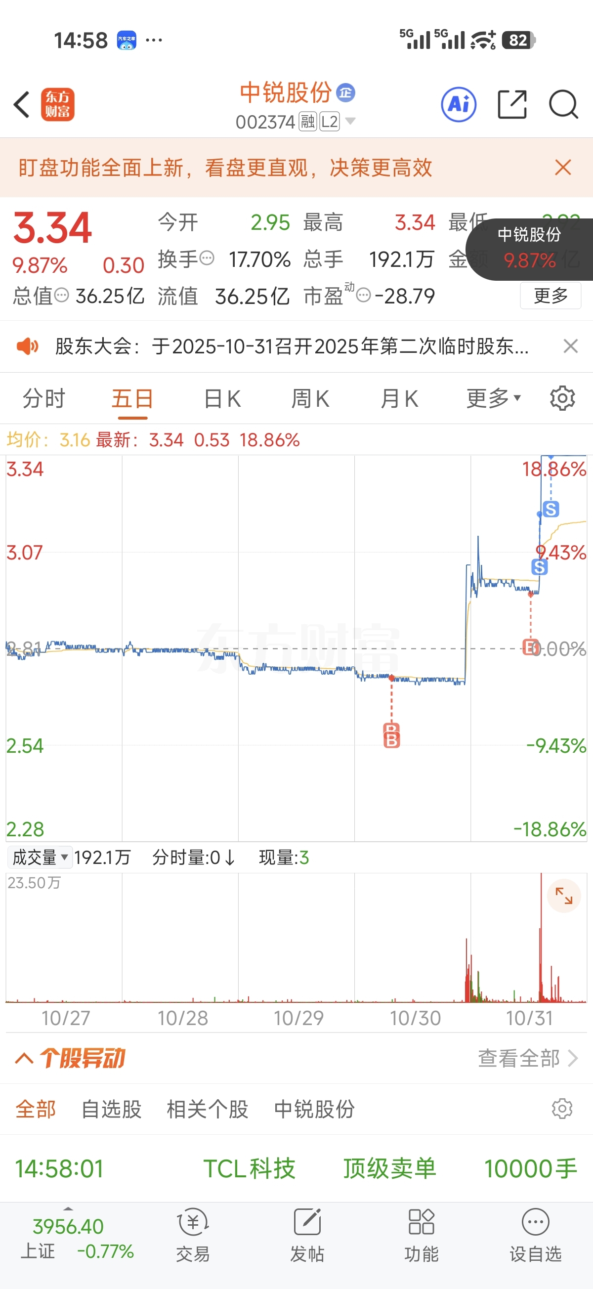 $中锐股份(SZ002374)$ 今天卖飞了,人麻了