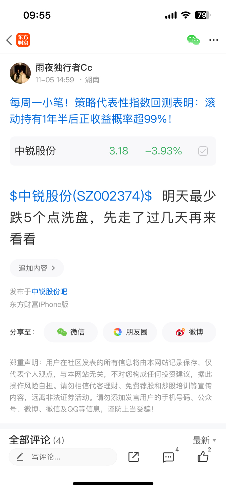温馨提示: 1.根据《证券法》规定,禁止编造、传播虚假信息或者误导性信息,扰乱证券市场;2.用户在本社区发表的所有资料、言论等仅代表个人观点,与本网站立场无关,不对您构成任何投资建议。用户应基于自己的独立判断,自行决定证券投资并承担相应风险。《东方财富社区管理规定》