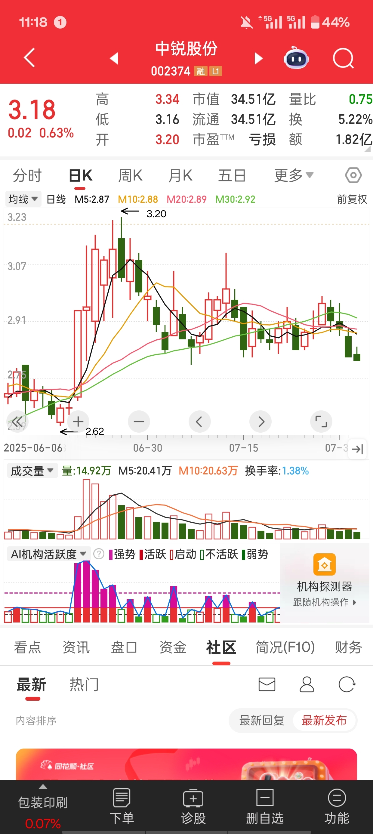 $中锐股份(SZ002374)$ 参考上一波,冲不上去,横着就往下走了
