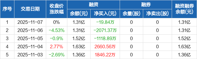 中锐股份:连续3日融资净偿还累计3210.11万元(11-07)