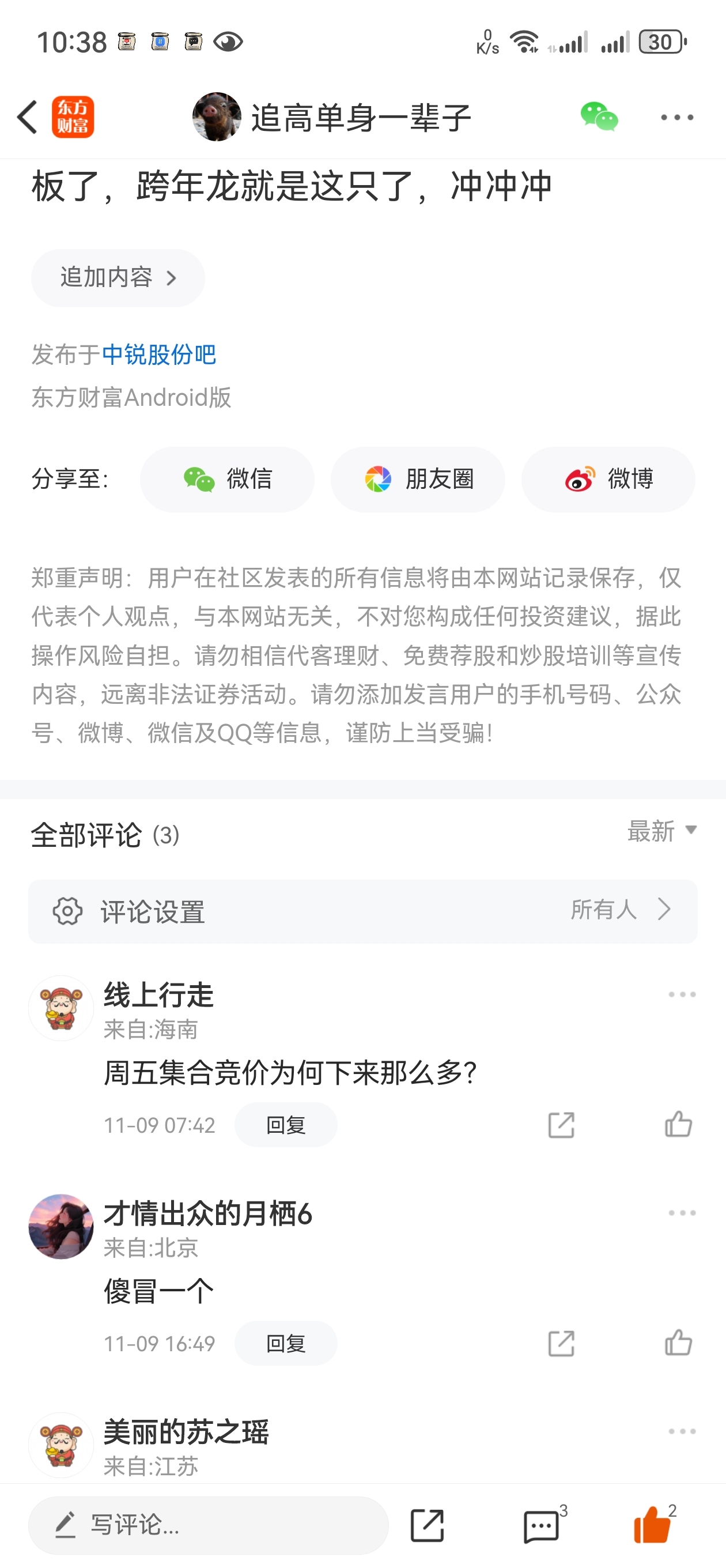 温馨提示: 1.根据《证券法》规定,禁止编造、传播虚假信息或者误导性信息,扰乱证券市场;2.用户在本社区发表的所有资料、言论等仅代表个人观点,与本网站立场无关,不对您构成任何投资建议。用户应基于自己的独立判断,自行决定证券投资并承担相应风险。《东方财富社区管理规定》