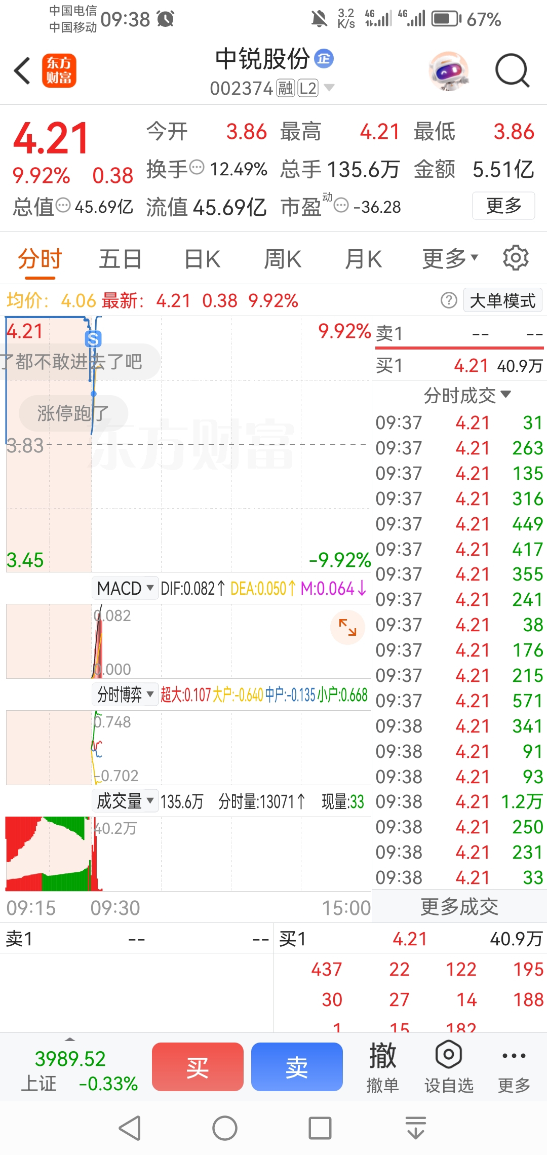 $中锐股份(SZ002374)$ 四个点跑了,难受