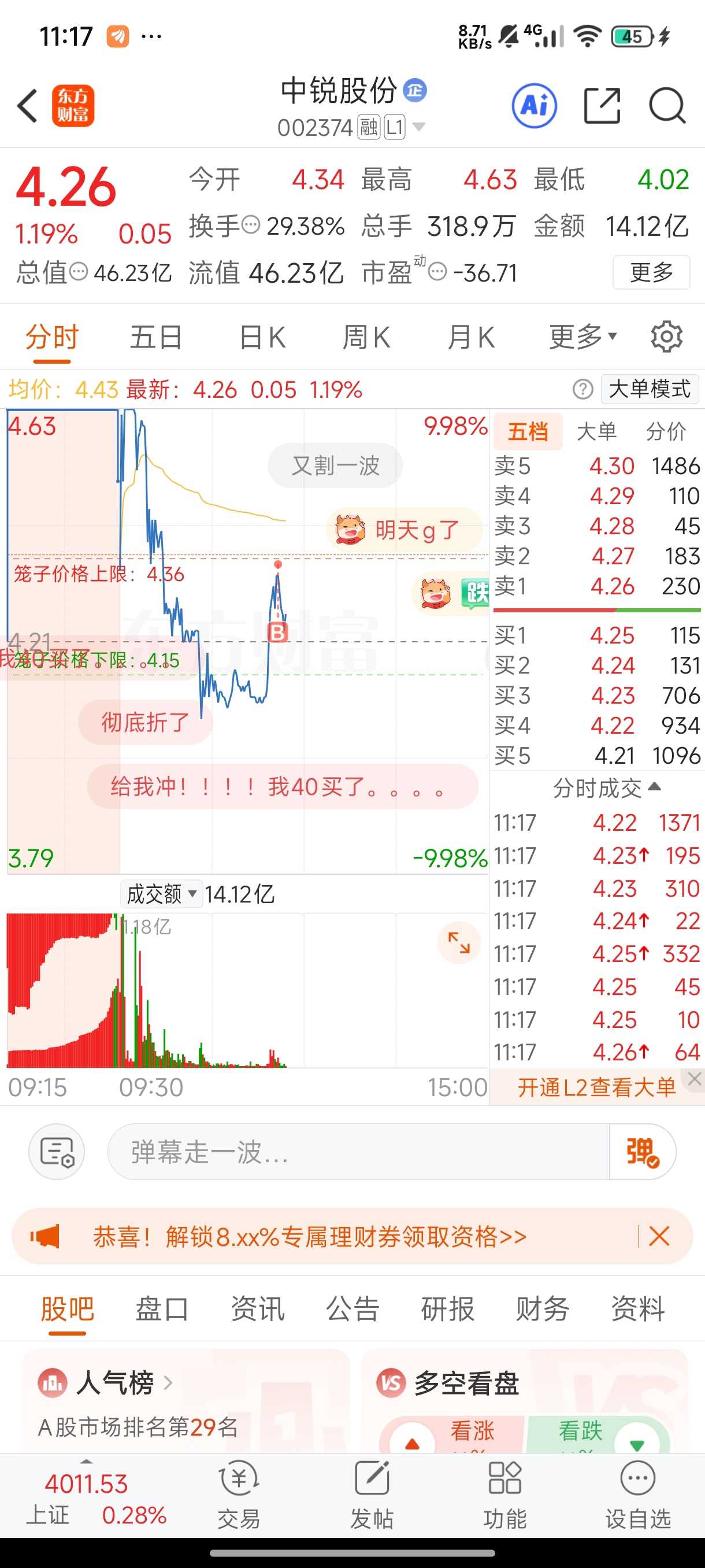 温馨提示: 1.根据《证券法》规定,禁止编造、传播虚假信息或者误导性信息,扰乱证券市场;2.用户在本社区发表的所有资料、言论等仅代表个人观点,与本网站立场无关,不对您构成任何投资建议。用户应基于自己的独立判断,自行决定证券投资并承担相应风险。《东方财富社区管理规定》