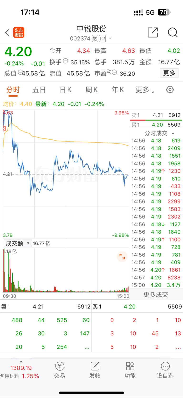 $中锐股份(SZ002374)$ 呜呜呜呜呜呜