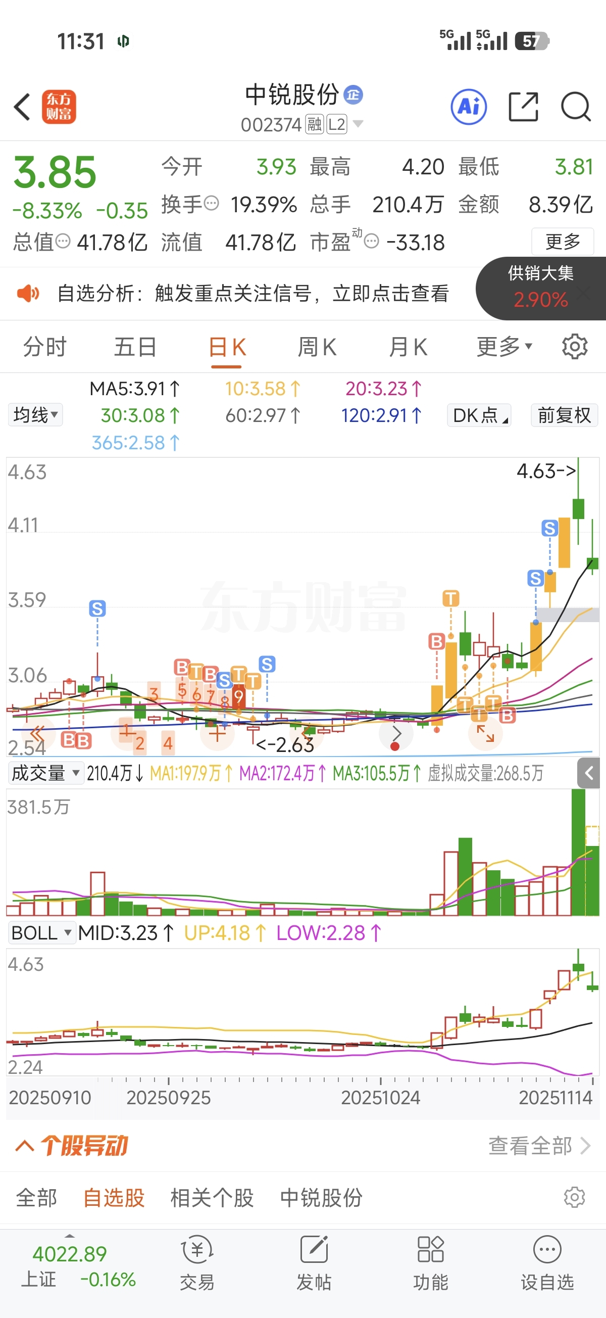 $中锐股份(SZ002374)$ 虽然砸回来了,但是少吃了2个全仓板还是很难过的