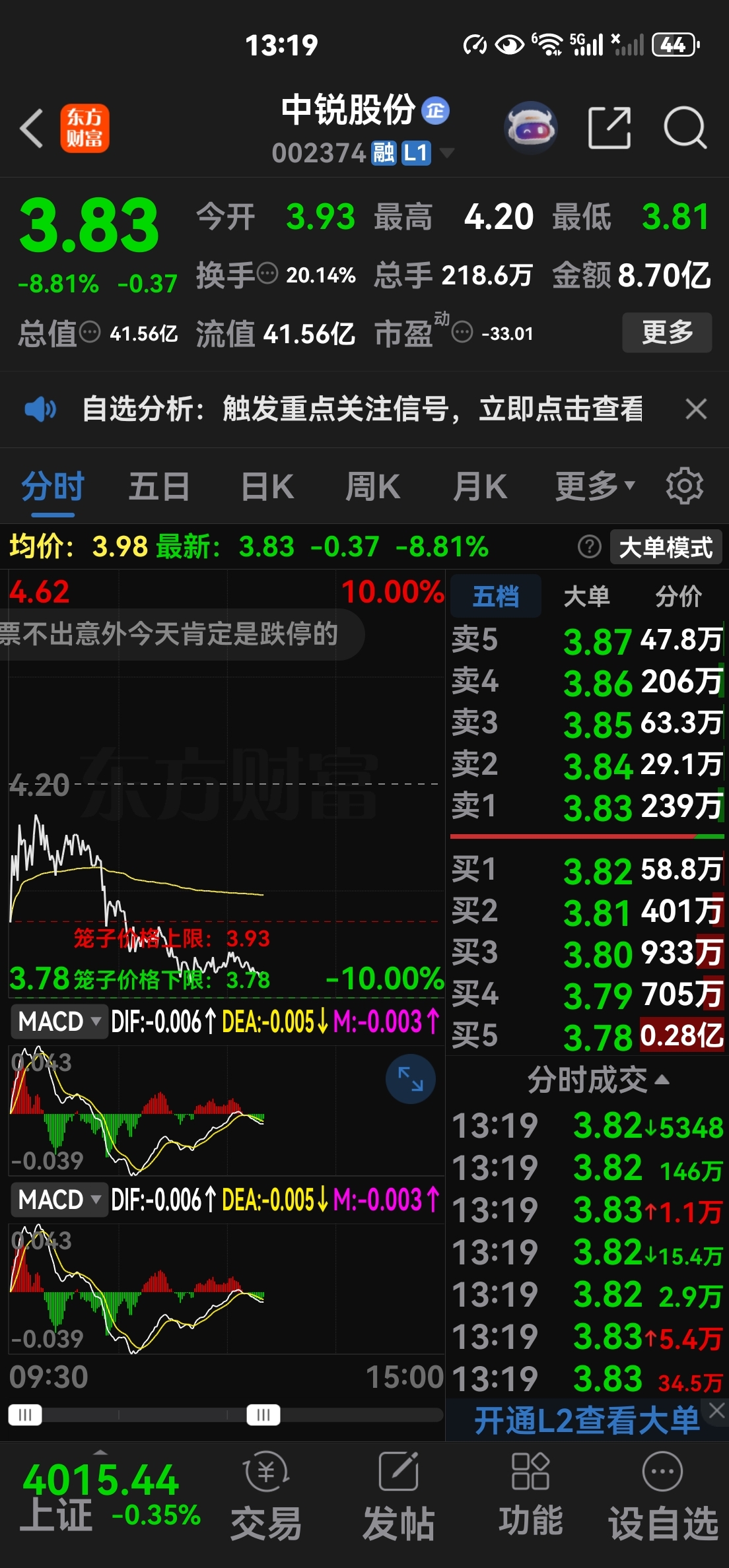 $中锐股份(SZ002374)$ 必须跌停,下周一3+65元,快跑