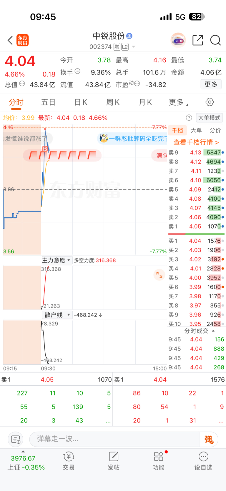 $中锐股份(SZ002374)$ 踏的,入场就跌,谁有我挂的高