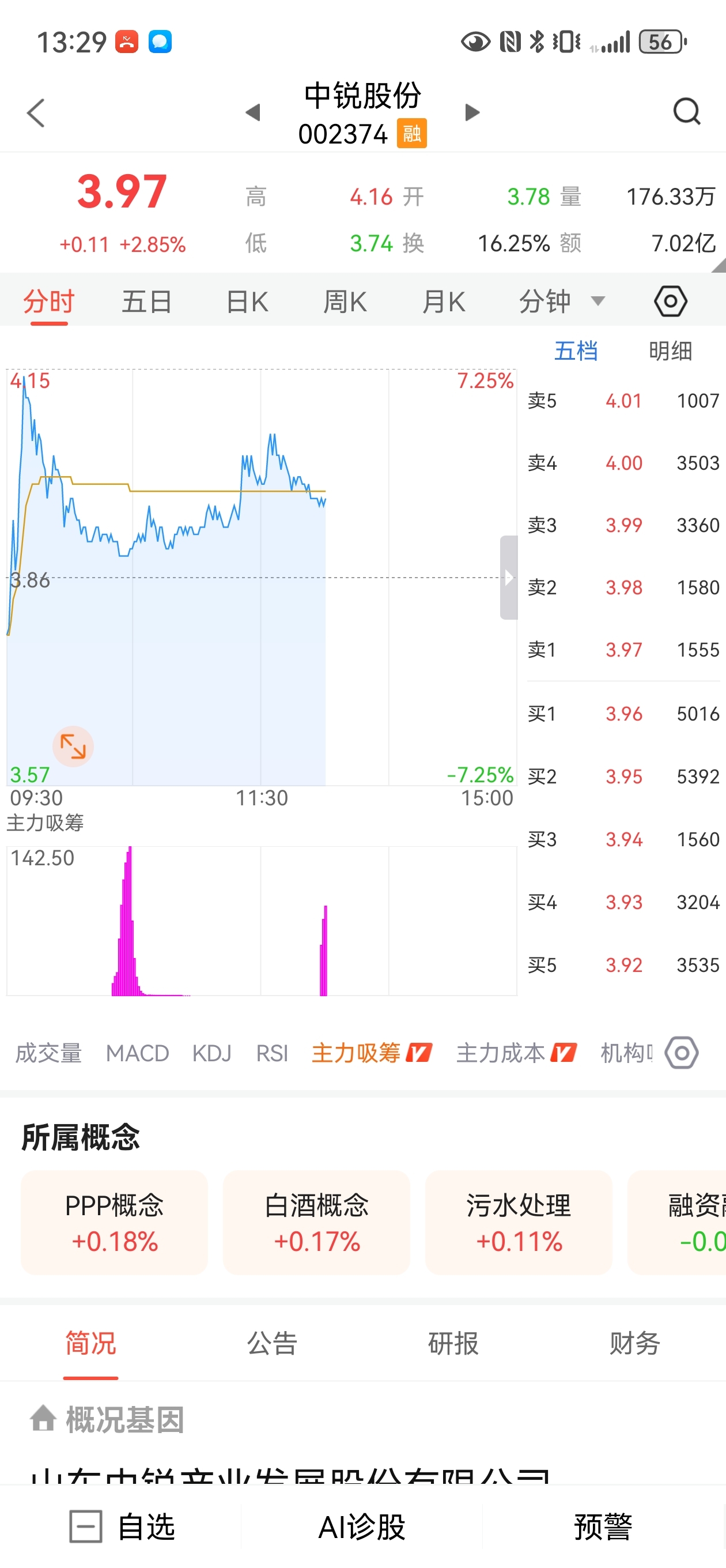 $中锐股份(SZ002374)$ 3.95元主力又开始承接了,尾盘还会有一次拉高!
