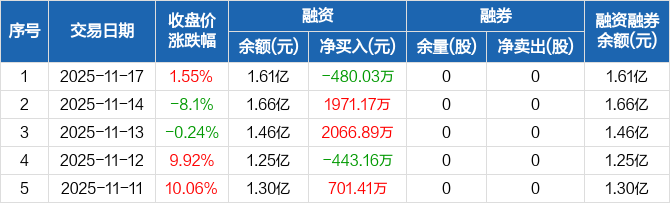 中锐股份:融资净偿还480.03万元,融资余额1.61亿元(11-17)