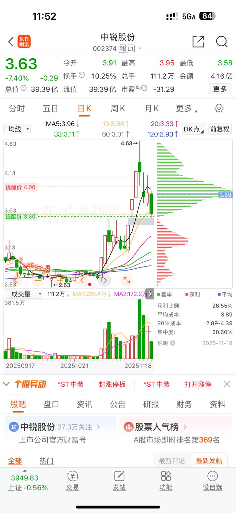 $中锐股份(SZ002374)$ 套牢的量太大了,不割肉消化不了,没人来帮解套的