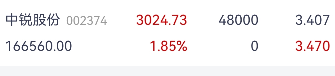 $中锐股份(SZ002374)$ 二点四十看被套住,收盘竟然盈利了,感谢上帝。阿门