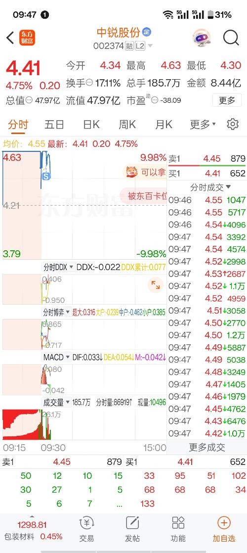 $中锐股份(SZ002374)$ 从最高位跌了一块多了,没了四分之一