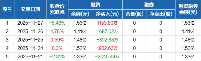 中锐股份:融资净买入1153.8万元,融资余额1.53亿元(11-27)