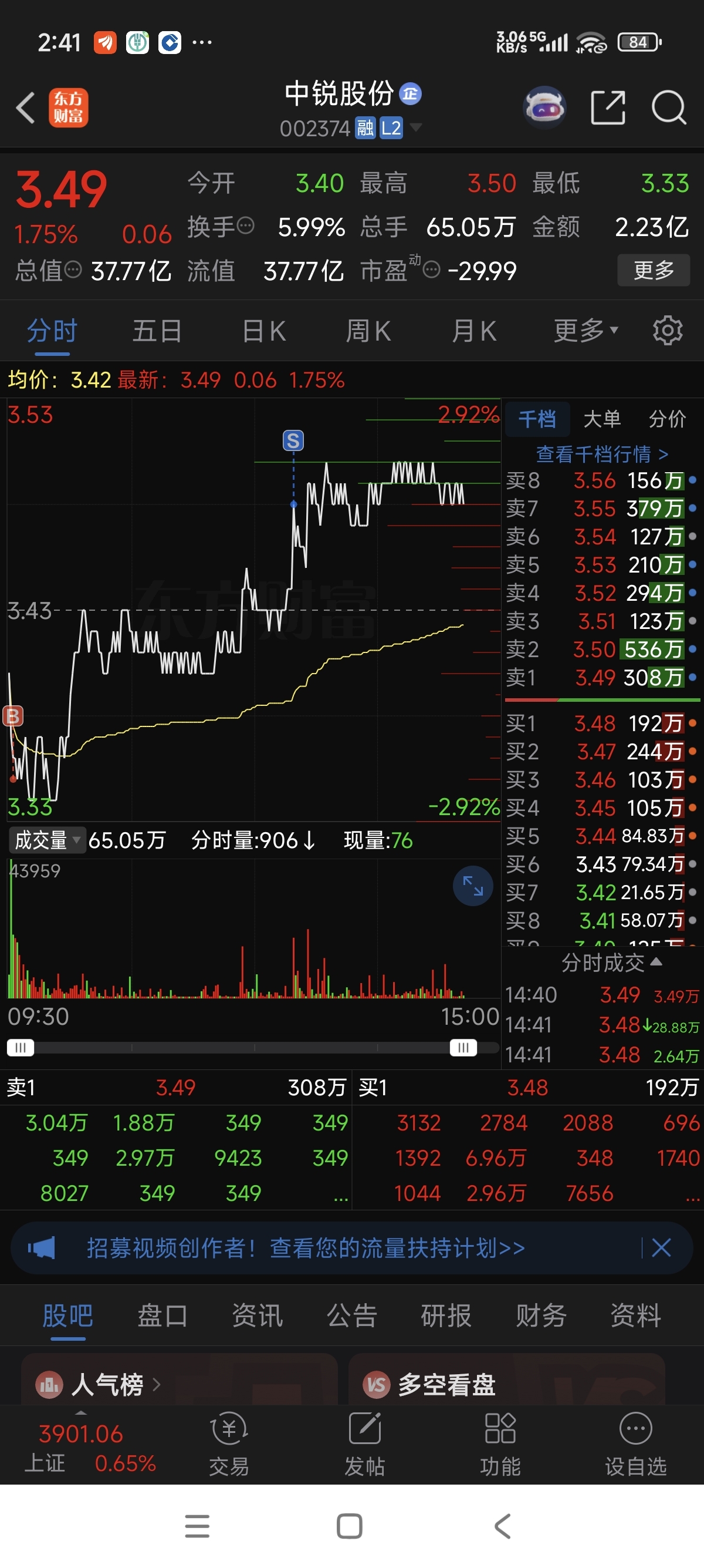 感谢主力老板今天又让我成功的t了一把现在成本是3.79元了,你不暴力拉涨让我解套