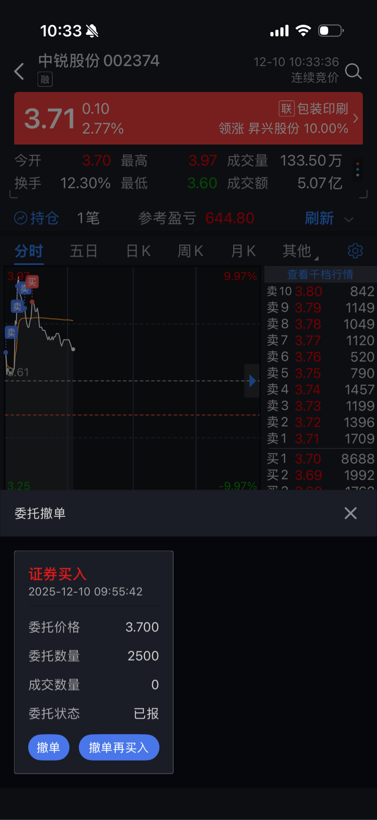 $中锐股份(SZ002374)$ 主力回来接我了
