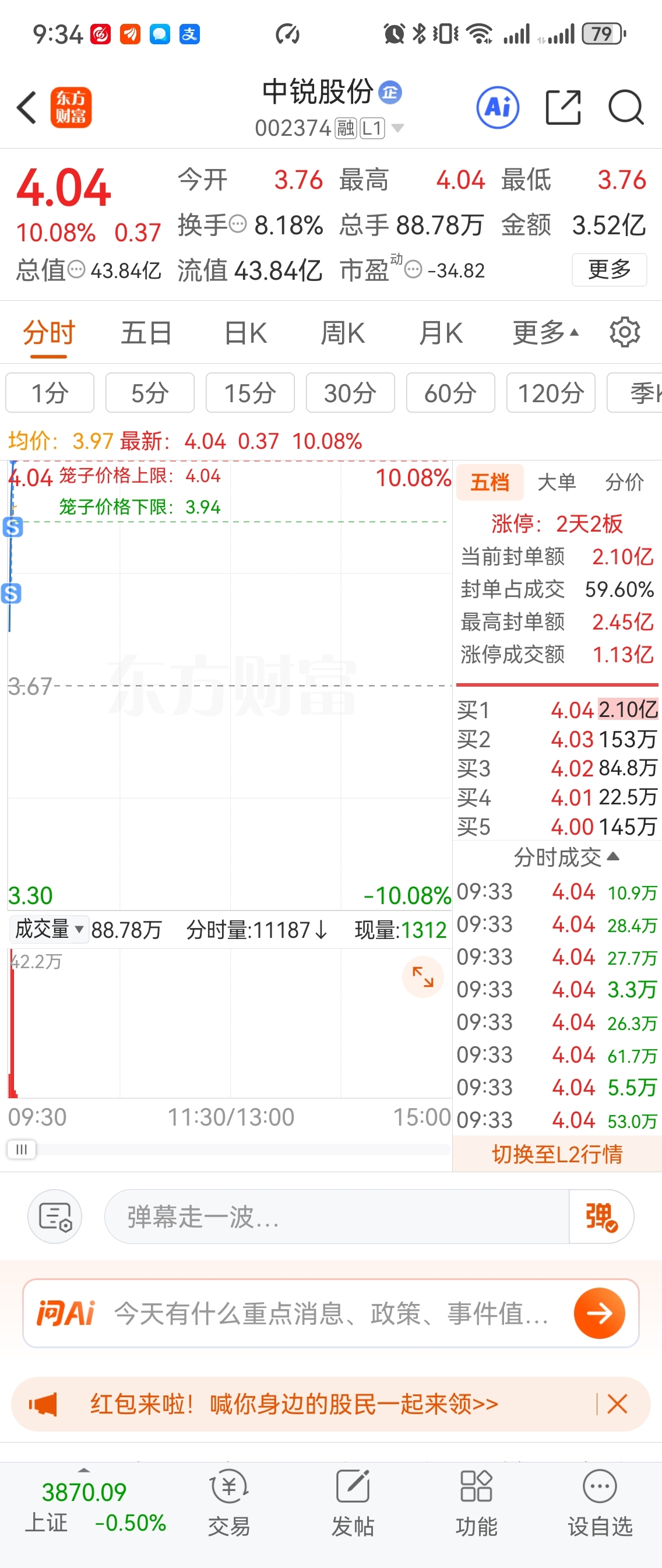 $中锐股份(SZ002374)$ 留点底仓涨跌随意