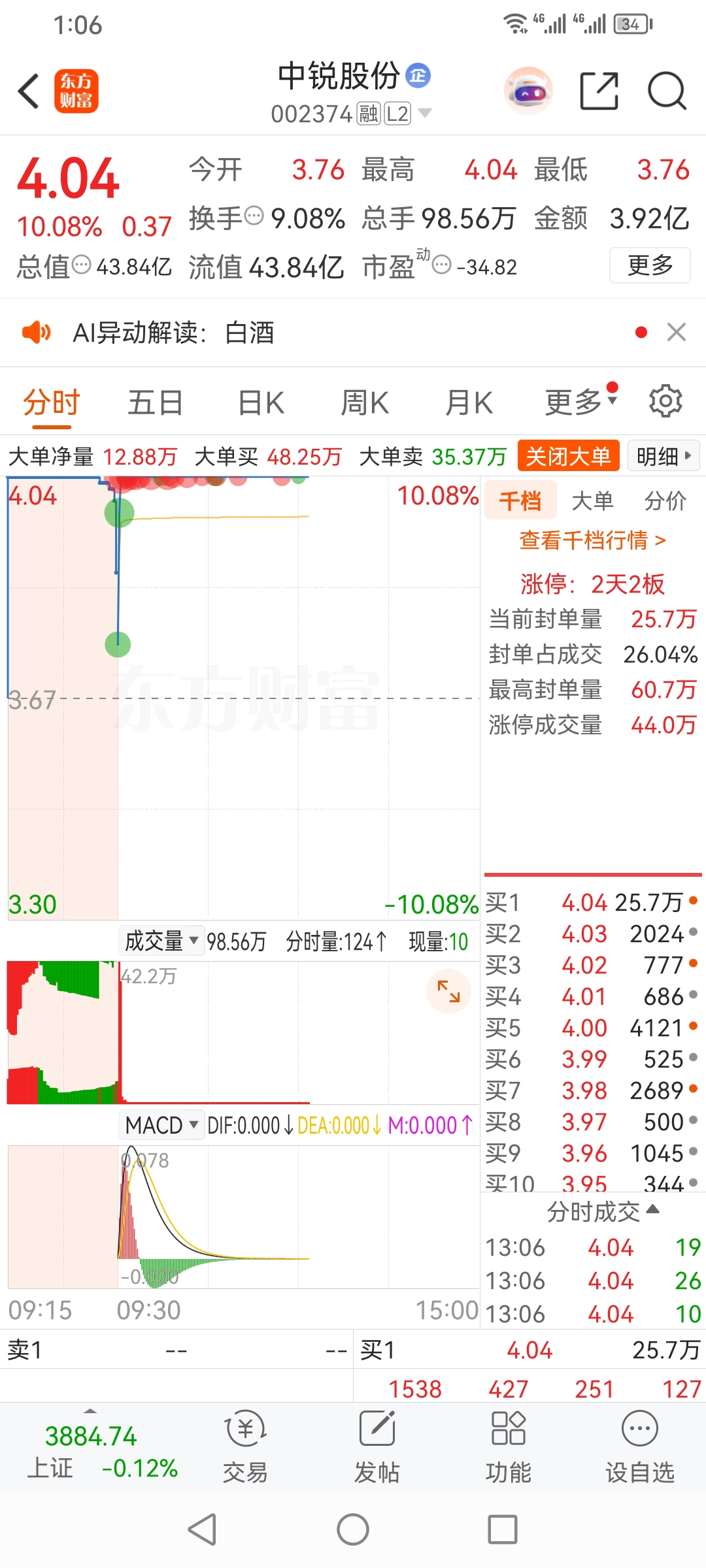 @妙想@炒股冠军方军@炒股冠军军哥方军打板中锐股份002374