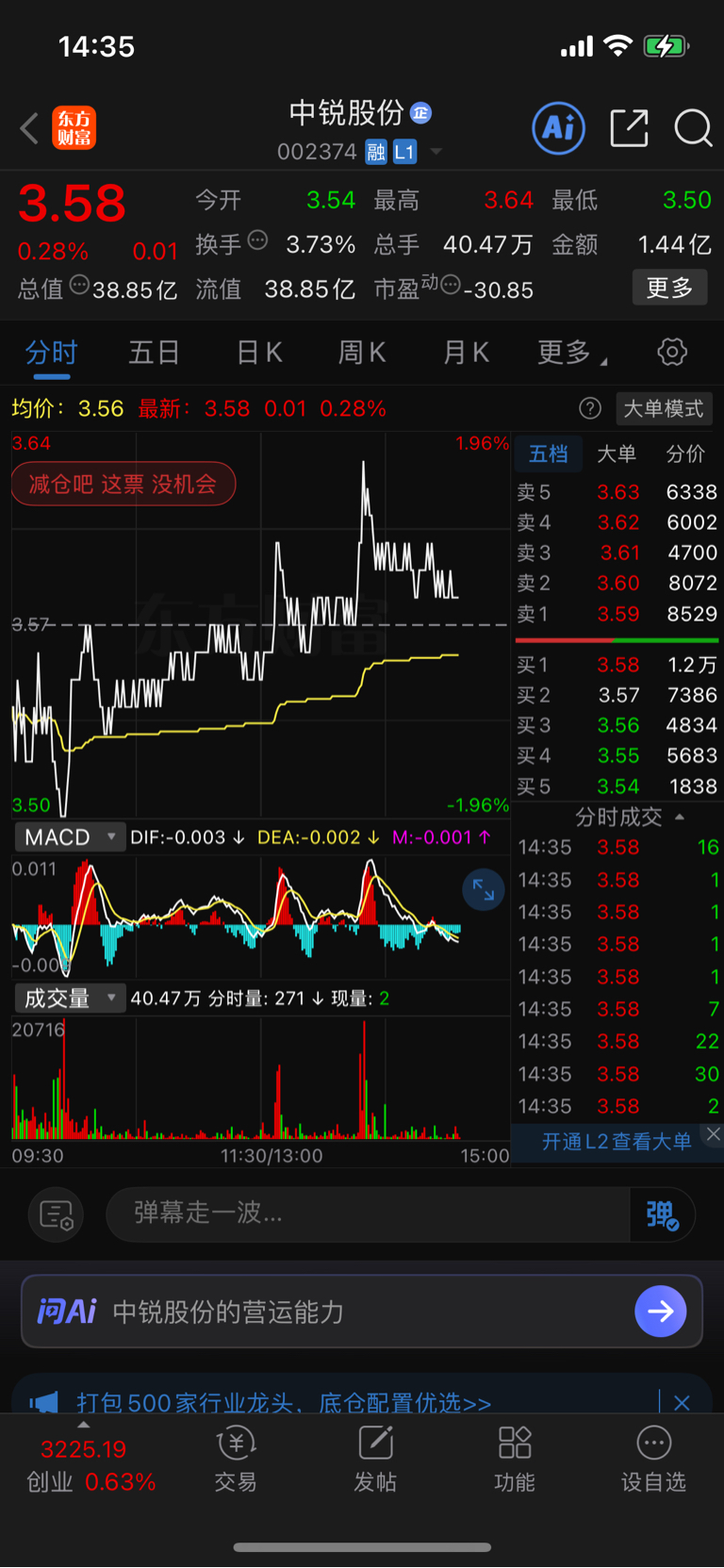 $中锐股份(SZ002374)$ 减仓吧,这票没机会!