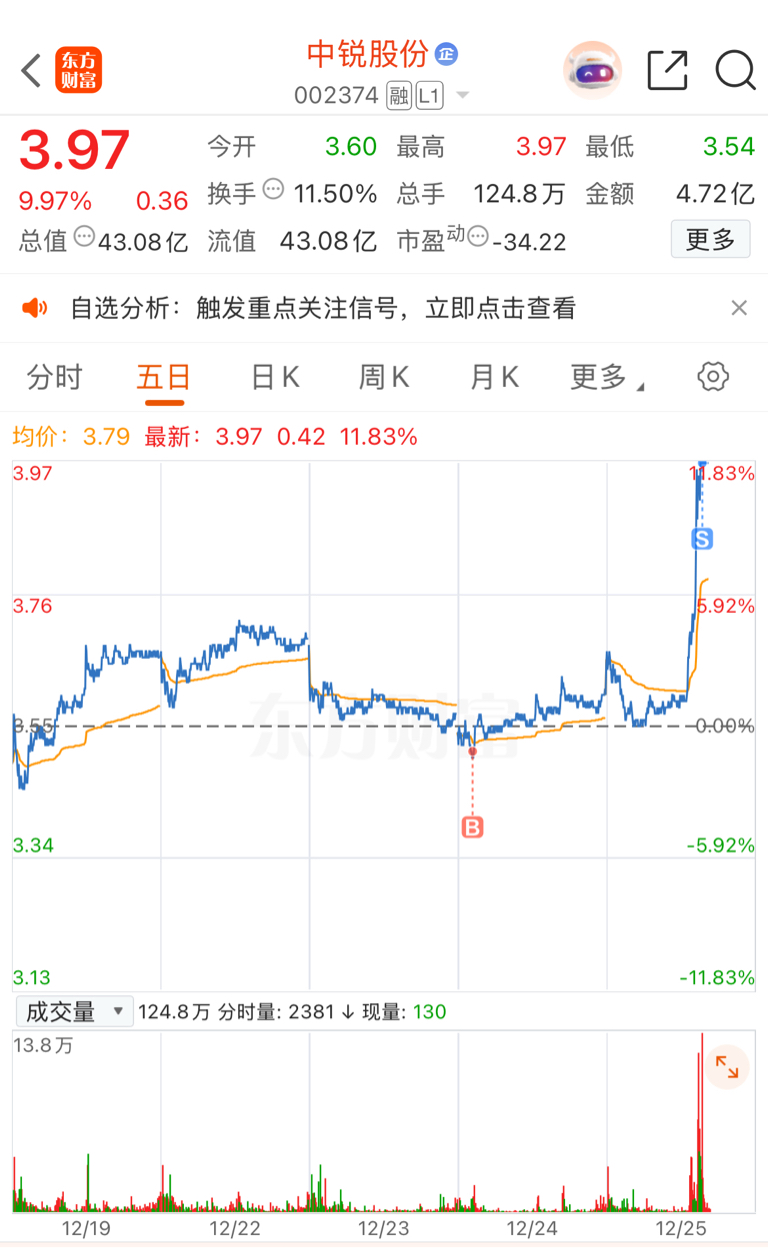 $中锐股份(SZ002374)$ 这是什么神仙股