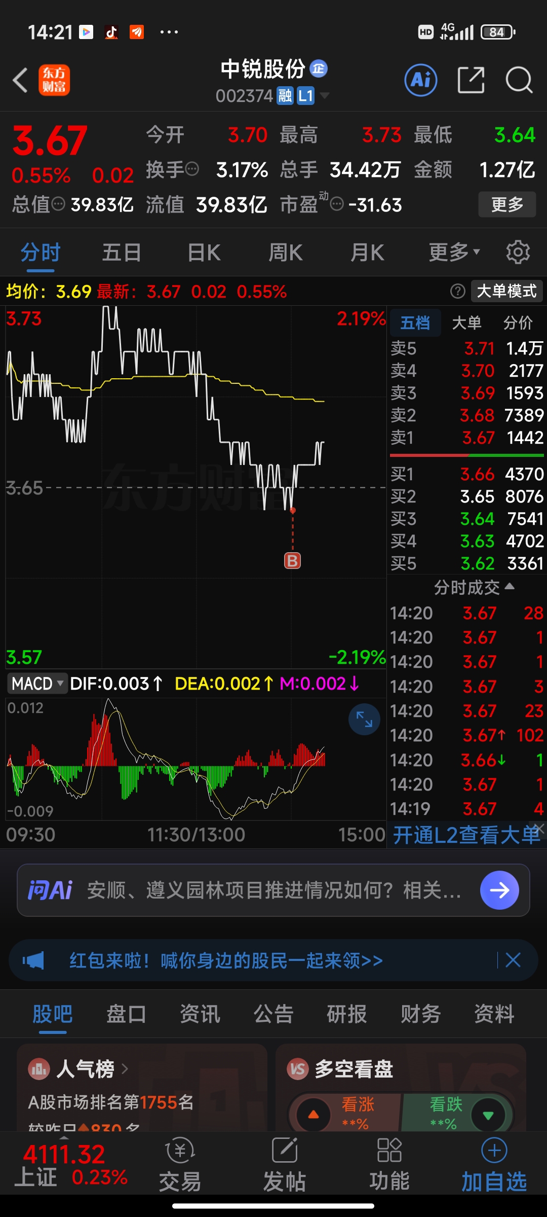 $中锐股份(SZ002374)$ 现在卖的朋友缺少耐心,应该不是时间,今天加满,春天不远